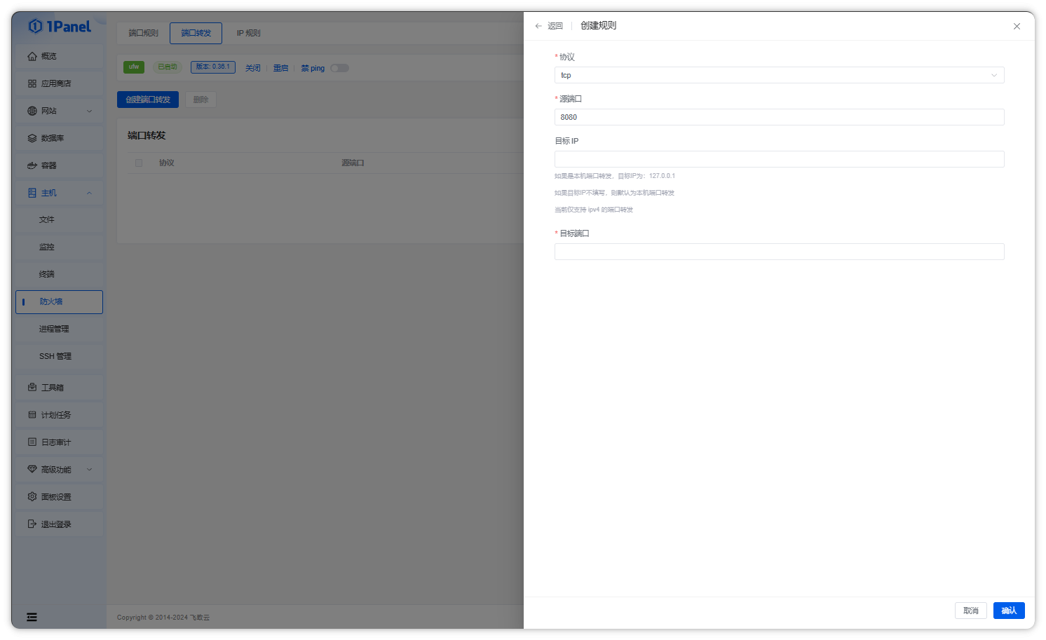 1Panel 集成了两种广泛使用的 Linux 防火墙软件:Firewalld 和 UFW。