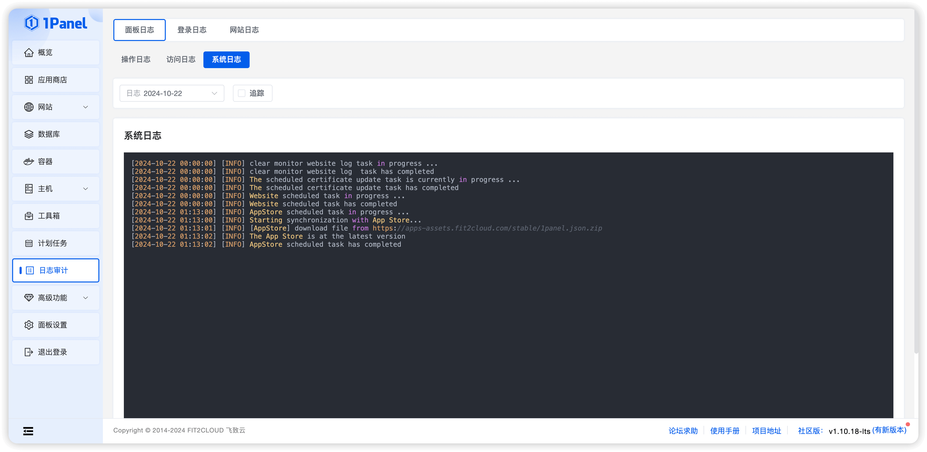 用于记录用户在 1Panel 上进行的操作。